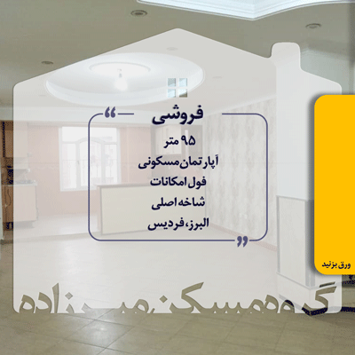 90 متر آپارتمان مسکونی وقع در فردیس فلکه پنجم خیابان 23 جدید شاخه اصلی طبقه سوم ساختمان دارای 3 طبقه و مجموعا 5 واحد می باشد